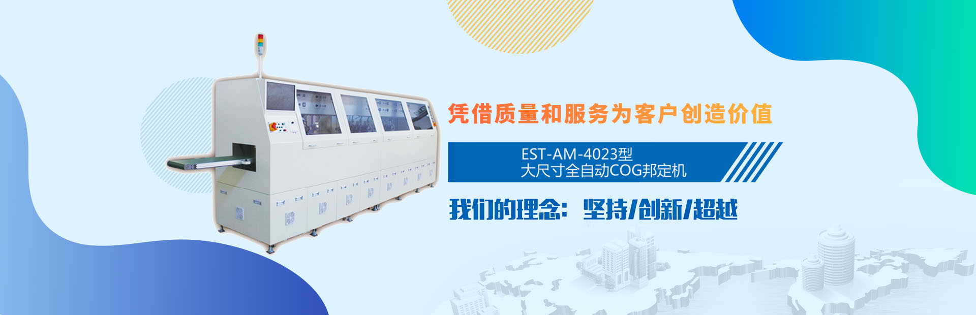 • 質量保證 主要產品有1-26寸AOI粒子壓痕檢測機、1-26寸系列全自動COG邦定機(國家立項項目)、中大尺寸COG返修機、1-26寸系列全自動FOG熱壓機